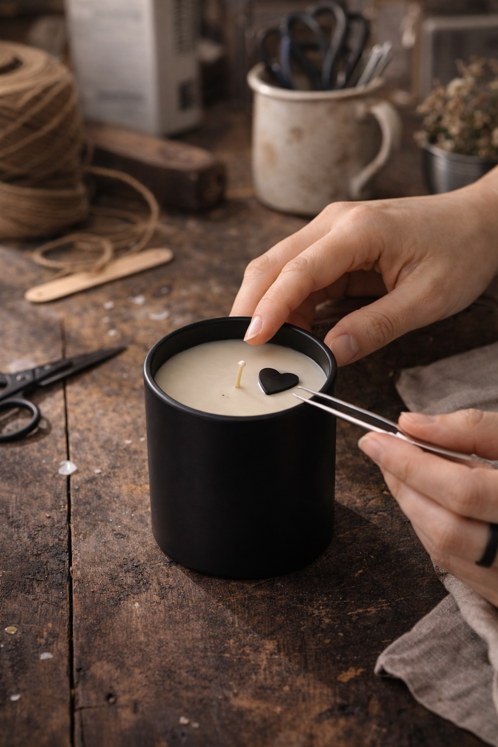 Chaque création Cœur Noir est imaginée et fabriquée à la main en Belgique, au sein d'IZ Déco à Haine-Saint-Paul. Je sélectionne soigneusement les matières premières : des cires de qualité, des parfums choisis avec exigence pour leur profondeur, leur justesse et leur tenue, et des contenants élégants pensés pour durer. Chaque bougie est coulée avec précision, les fondants sont travaillés pour diffuser progressivement leur parfum, et les diffuseurs sont composés pour créer une présence subtile, jamais envahissante. Rien n’est produit en série industrielle ; chaque pièce est réalisée en petite quantité, avec une attention méticuleuse.